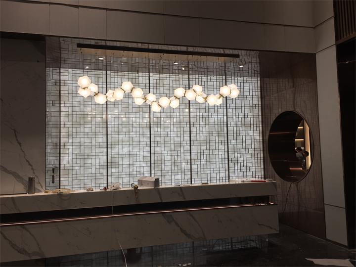 明鉑爾?不銹鋼團隊嚴格安裝施工標準制作不銹鋼屏風隔斷,整圓造型,波浪板吊頂制作安裝。