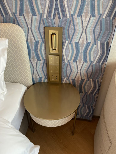 房間內不銹鋼按鈕面板和不銹鋼床頭柜